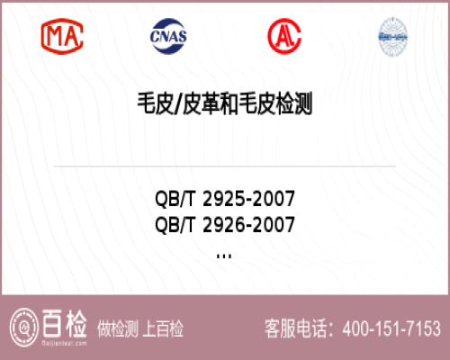 毛皮皮革和毛皮檢測項目詳情1、毛皮 耐熨燙色牢度試驗方法 /QB/T 2926-2007---毛皮/皮革和毛皮耐熨燙色牢度項目檢測