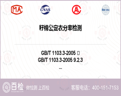 籽棉公定衣分率檢測項目詳情1、棉花 天然彩色細絨棉 GB/T 1103.3-2005 9.2.3---棉花 天然彩色細絨棉籽棉公定衣分率項目檢測